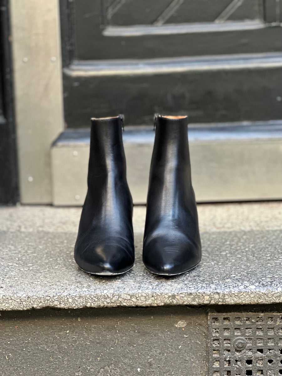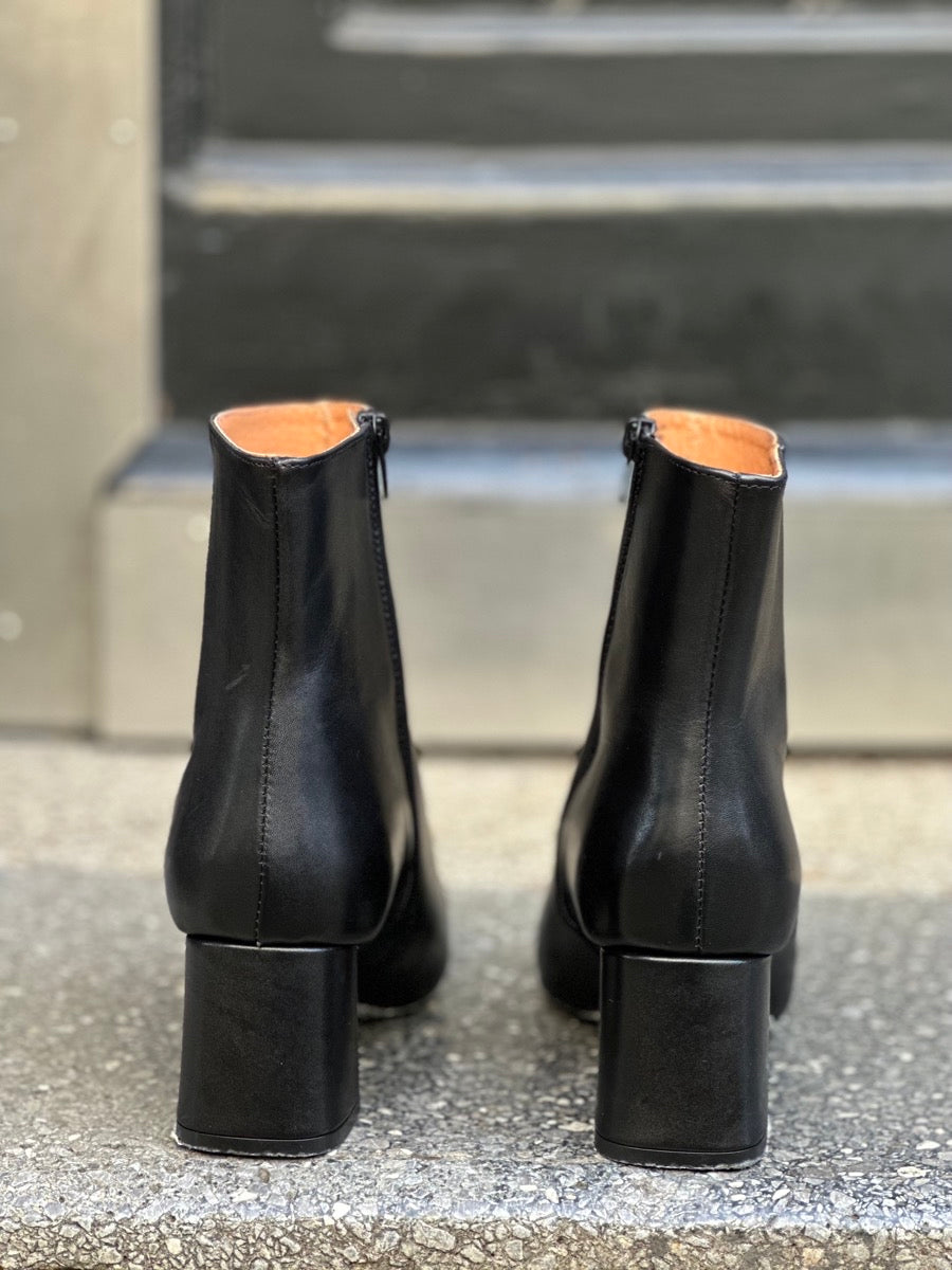 Die extravagante Stiefelette aus Leder läuft spitz zu, hat einen 7 cm Pfenningsabsatz und rundet jeden Look perfekt ab. Sie ist komplett mit Leder gefüttert und hat einen seitlichen Reißverschluss. Die Größe fällt größengerecht aus.