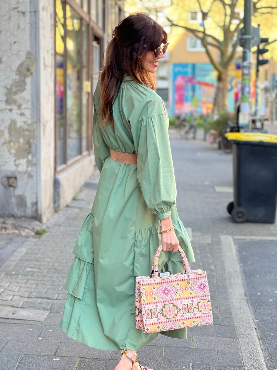 Langarm Kleid mit V-Ausschnitt und verspielte seitliche Rüschen