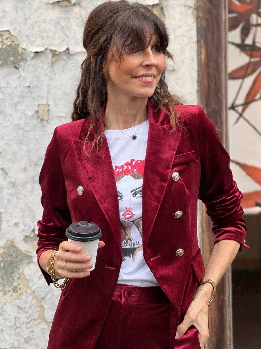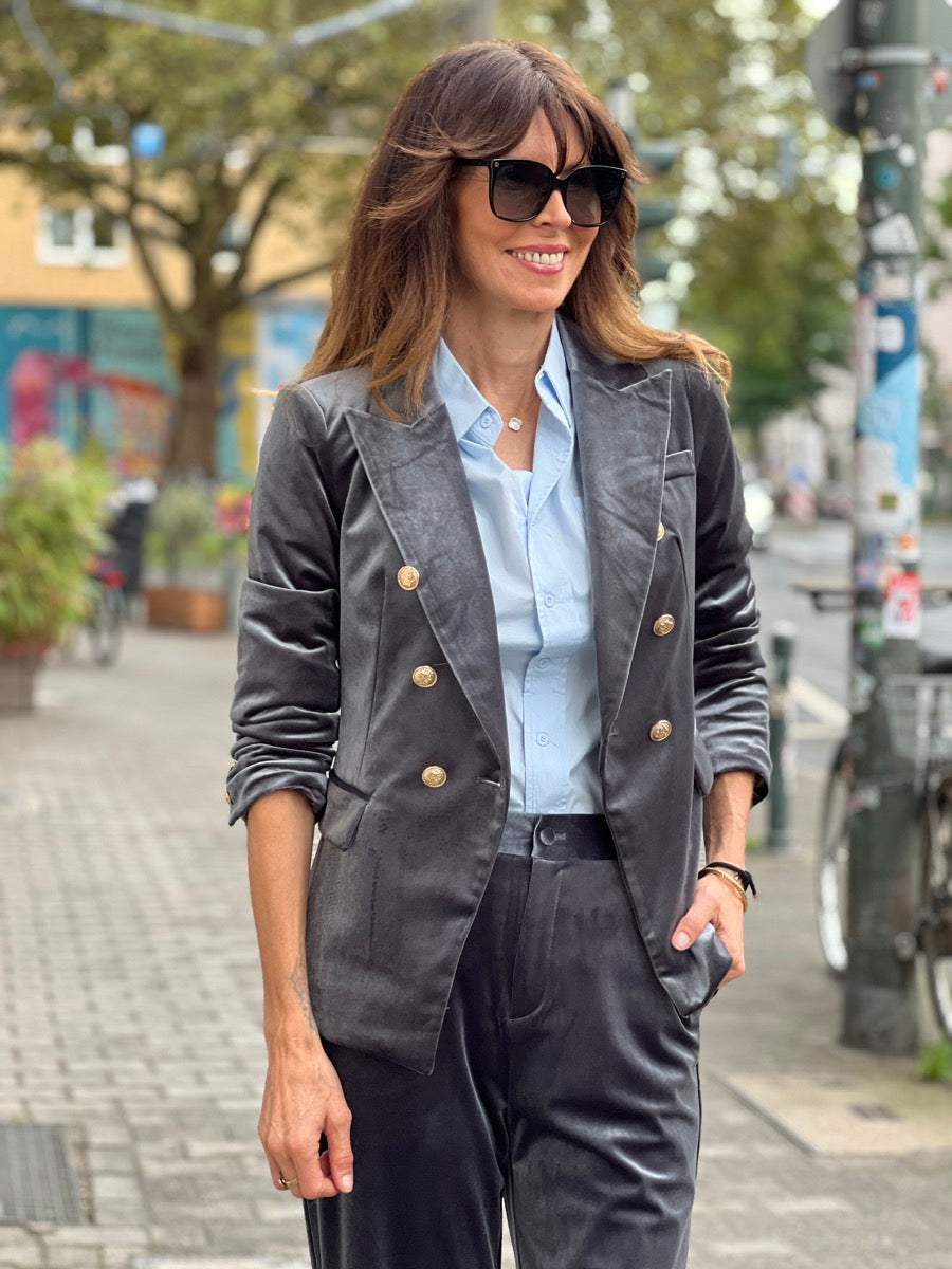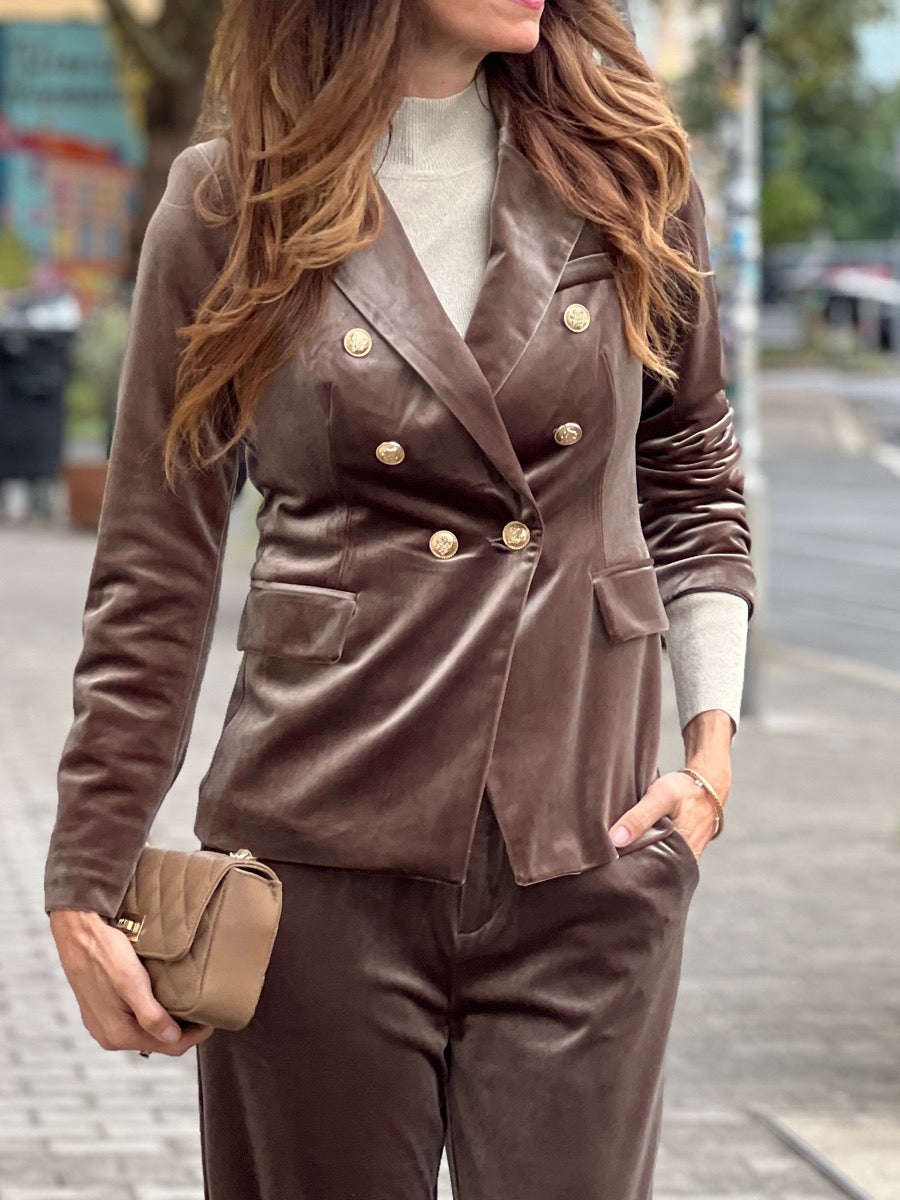 Doppelreihiger Blazer mit Klappentaschen und goldenen Knöpfen