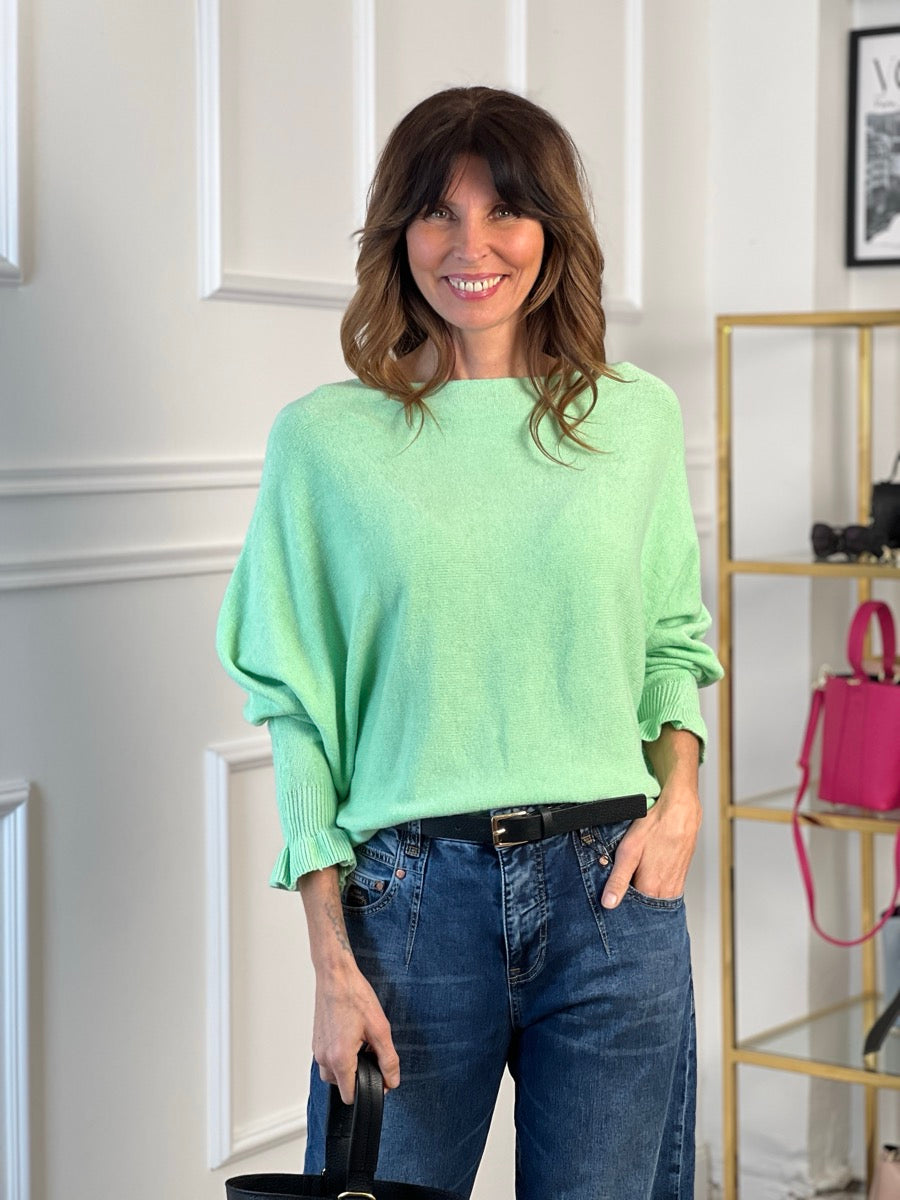 Pullover aus feinem Strick mit Fledermausärmeln und U-Boot Ausschnitt. Toller Styling-Partner zu Röcken, Kleidern und Hosen.
