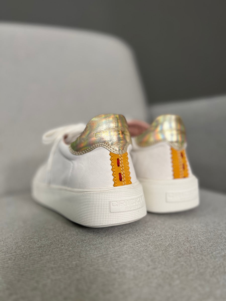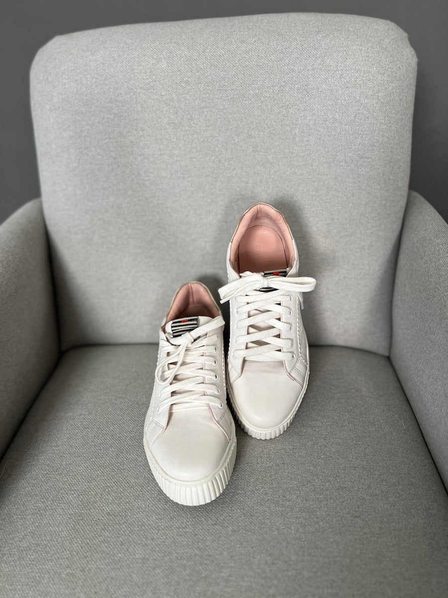 Sportiver, weißer Sneaker im Retro-Look. Hoher Tragekomfort durch Innenfutter aus Leder und Fussbett. Wenn du zwischen den Größen bist, wähle die kleinere Größe, die Schuhe fallen etwas größer aus.