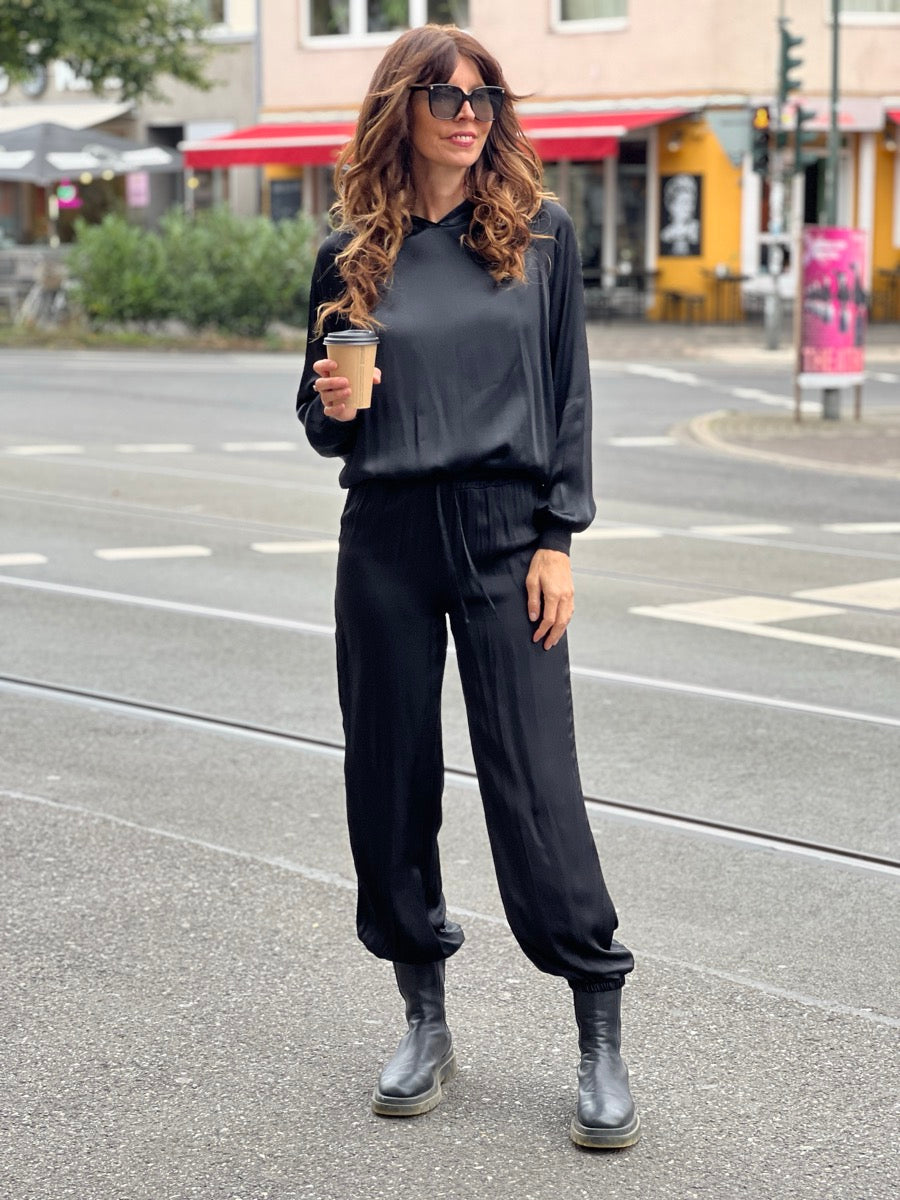 Fließende Hose im Jog-Style mit Tunnelzug und elastischem Bündchen