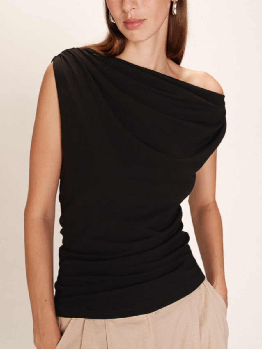 Mit seiner fließenden Silhouette und der raffinierten Schulterpartie bringt dieses Top sommerliche Eleganz in jedes Outfit.