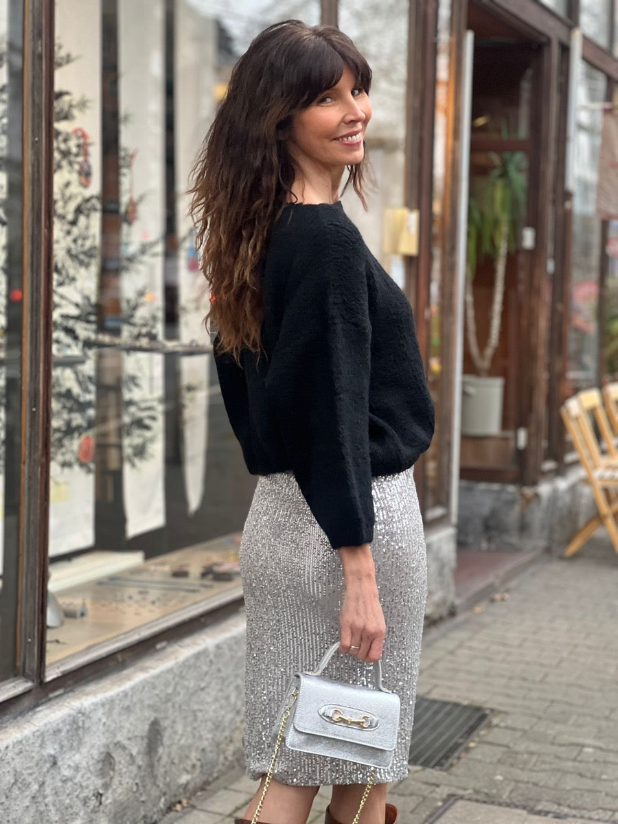 Cool und soft: Grobstrick Pullover aus weichem Mohair Mix. Kurz geschnitten in lockerer Passform. Extra voluminöse lange Ärmel, die von gerippten Bündchen zusammen gehalten werden.