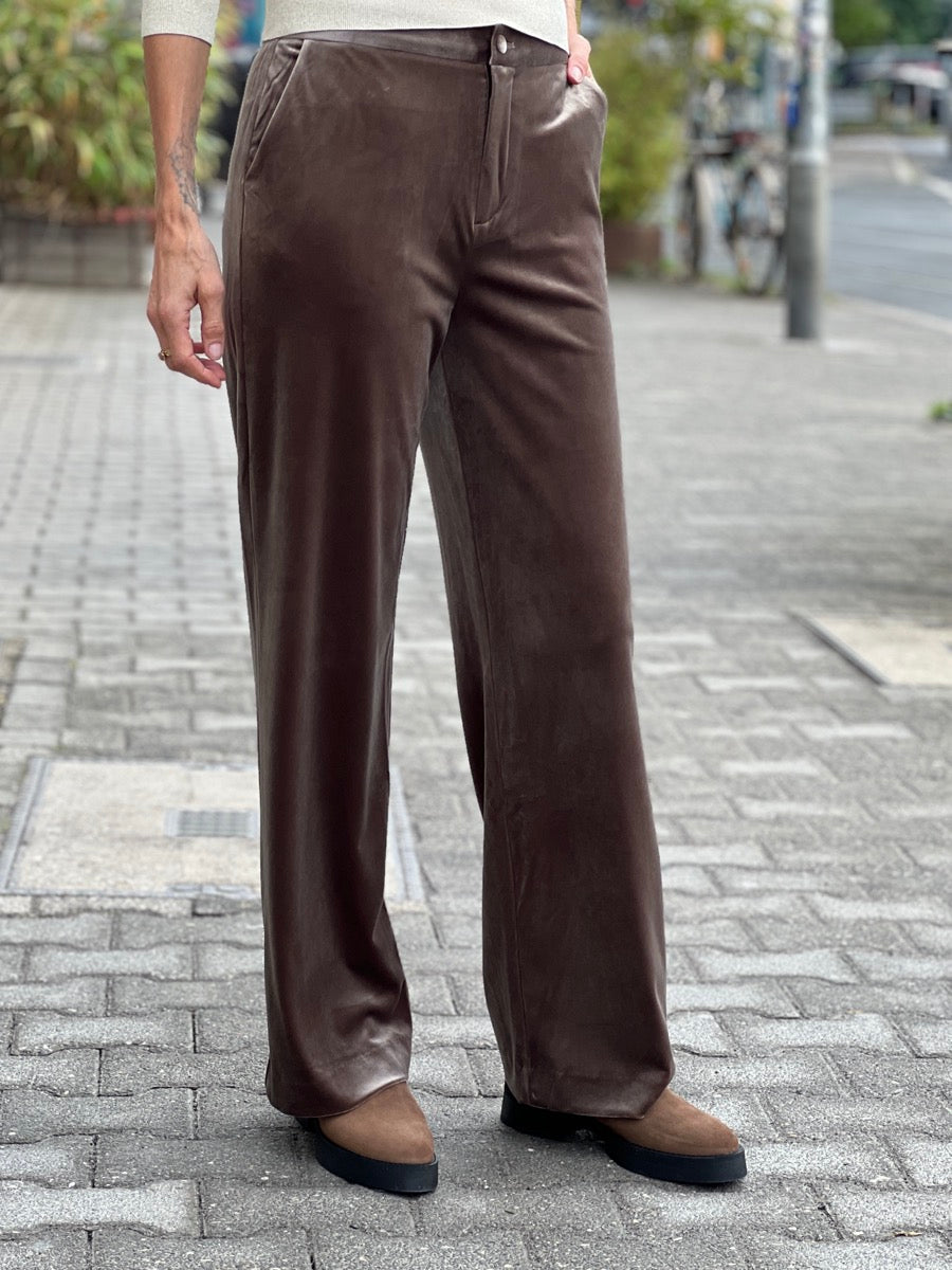 Gerade geschnittene Hose aus Samt. Das softe Material hat einen hohen Tragekomfort.