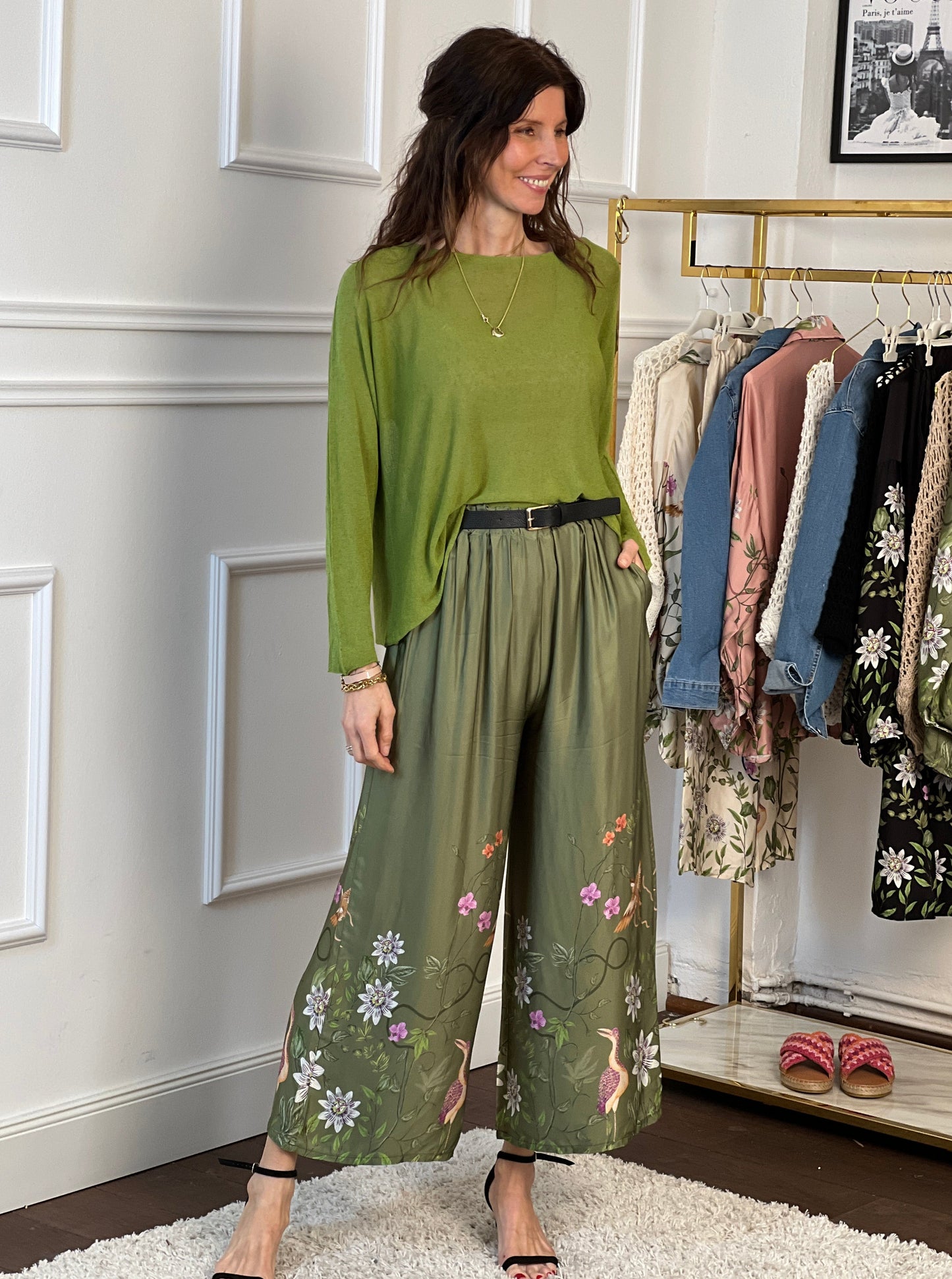 Der Strickpullover besteht aus einem soften Viskose Mix bestehend aus 64 % Viskose, 18 % Leinen und 18 % Polyamide.?