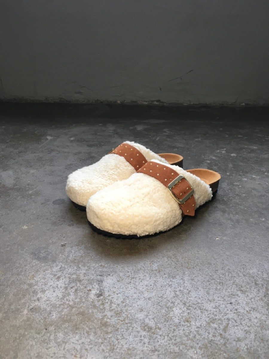 Dieser Slipper ist außen aus Teddystoff und Wildleder und innen aus Leder gefertigt. Tragen Sie diesen Schuh zu einer schönen Hose oder zu einem Kleid.
