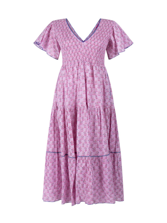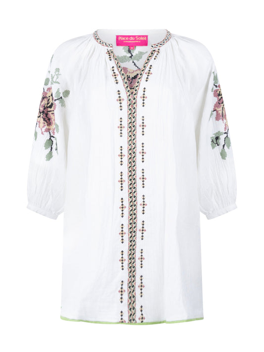 Place du Soleil Kleid White Pink Rosa Flower Chiffon