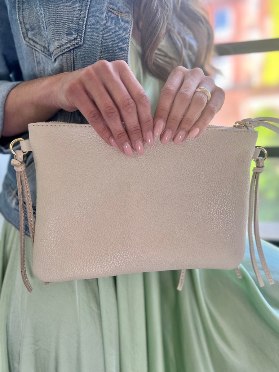 Innentasche mit Reisverschluss. Langer, variabler Tragegurt.